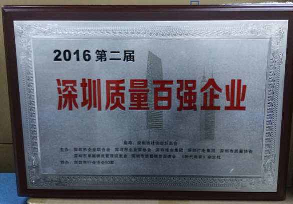 2016年12月21日,由深圳市企業(yè)聯(lián)合會、深圳市企業(yè)家協(xié)會聯(lián)合深圳報(bào)業(yè)集團(tuán)、深圳廣電集團(tuán)、深圳市質(zhì)量協(xié)會、深圳市卓越績效管理促進(jìn)會、《時(shí)代商家》雜志社等50余家相關(guān)行業(yè)協(xié)會共同舉辦的第二屆“深圳質(zhì)量百強(qiáng)企業(yè)”評選,最終落下帷幕。