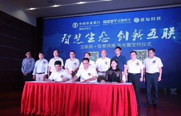 2016年8月17日,由農業銀行湖南分行、證通電子、盛燦科技共同打造的“互聯網+智慧商圈”項目在長沙成功落地。該項目不僅是是湖南省建設智慧城市、打造“互聯網+城市”的重要模塊,也是基于支付場景創新,涵蓋掃一掃、搖一搖、微信Wi-Fi、APP等多維支付手段的全國首個“智慧商圈”。