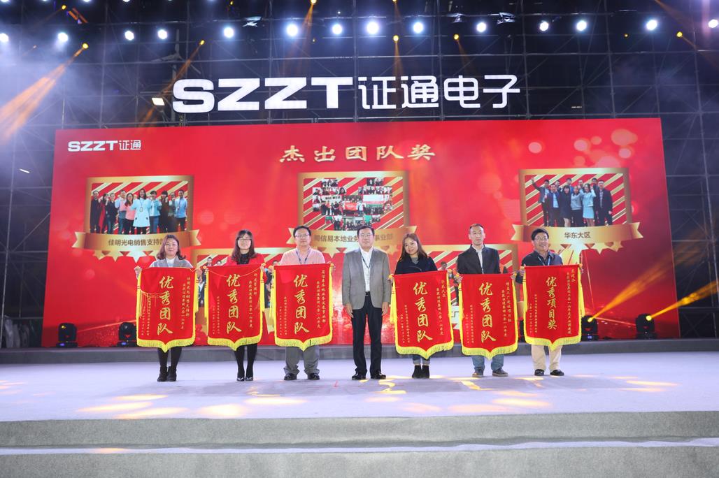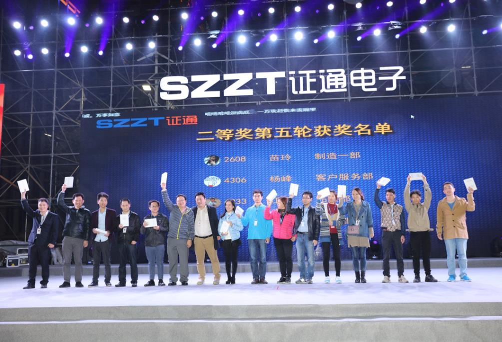 ?? 曾總提出,2017年證通電子應明確戰略目標,把握業務方向、思路以及重點工作,推進管理升級,形成管理沉淀豐富證通的組織文化;改善組織機能,形成目標導向的組織績效管理;提升人員素質和基本技能。2016年證通電子成績卓然,2017年更該奮起。筑夢未來,揚帆啟航”證通電子總裁曾勝強先生的精彩致辭過后,迎春晚會暨2016年度表彰大會正式開始。本次大會共表彰了2016年具有杰出表現的年度優秀員工70名、杰出員工3名及優秀團隊5支,并由到場領導為他們頒發綬帶、錦旗和獲獎證書。