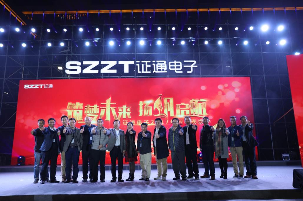 ? 2017118日晚,“筑夢未來·揚帆啟航”證通電子2017年迎春晚會在深圳市證通電子產業園璀璨啟幕。證通電子總裁曾勝強先生攜夫人、證通電子常務副總裁許忠慈先生等領導、嘉賓及公司全體同仁齊聚一堂,共襄盛舉,為2016的累累碩果喝彩,也為2017的熱血出征燃起熊熊之火。