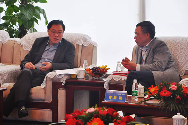 總裁曾勝強向長沙市委副書記、市長陳文浩介紹公司產品及業務板塊