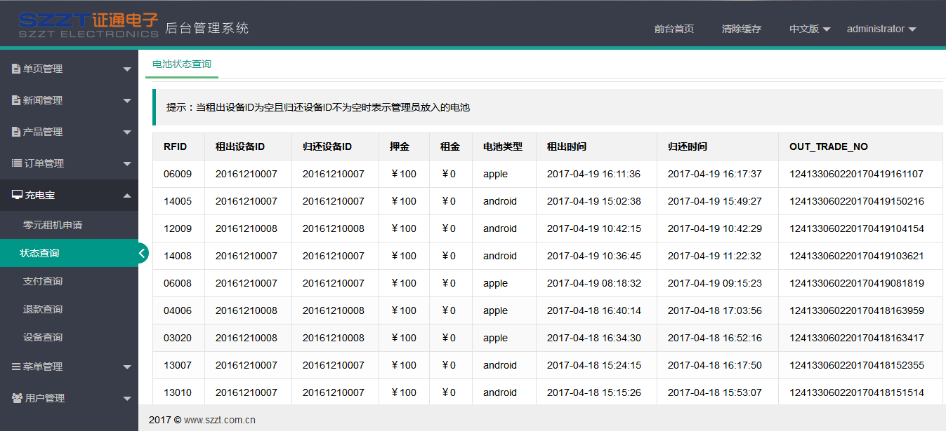 我們的運(yùn)營管理平臺可實(shí)現(xiàn)交易數(shù)據(jù)統(tǒng)計(jì)、終端電池監(jiān)控、媒體遠(yuǎn)程分發(fā)、終端遠(yuǎn)程診斷、遠(yuǎn)程應(yīng)用管理等功能,保障充電寶租借終端的持續(xù)、高效運(yùn)行。