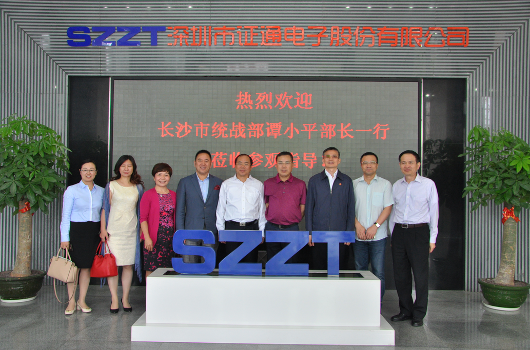 2017年5月20日,長沙市委常委、市委統戰部部長譚小平先生,長沙市政協副主席、市工商聯主席彭繼球先生率團蒞臨深圳證通電子產業園進行參觀考察,一行人在總裁曾勝強先生的陪同下,參觀證通電子展廳并了解了公司整體概況。譚小平部長表示,由衷歡迎在深的湖湘企業家回鄉投資、參與長沙發展建設。