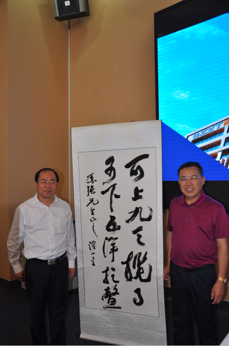 作為一名長沙籍企業家,曾勝強先生就公司近年來發展戰略部署、支持家鄉建設等問題與譚部長進行了深入探討,譚小平對長沙籍企業家在深圳創業發展取得的成績給予高度評價,并在現場揮毫潑墨為證通題下幾幅大字,以示勉勵。
