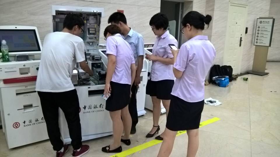 其中,為完成5月27日120個網點的提前上線,公司有效組織客服機動團隊增援,一天時間內人員全部到位,奔赴各網點安裝,在團隊的共同努力下,齊心協力克服困難,順利實現智能柜臺全部上線成功。