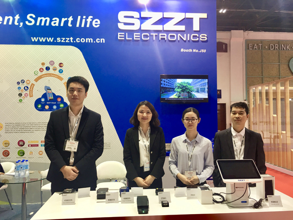 本次展會,證通電子以“SecurePayment, Smart life”(安全支付,智慧生活)為主題,展出了自主創新研發、具有稅控模塊和指紋識別模塊的智能POS KS8223和智能支付終端KS8223S、升級創新的掛壁式支付終端ZT2312、閃付掃碼盒KS8612、人臉身份核查儀等。
