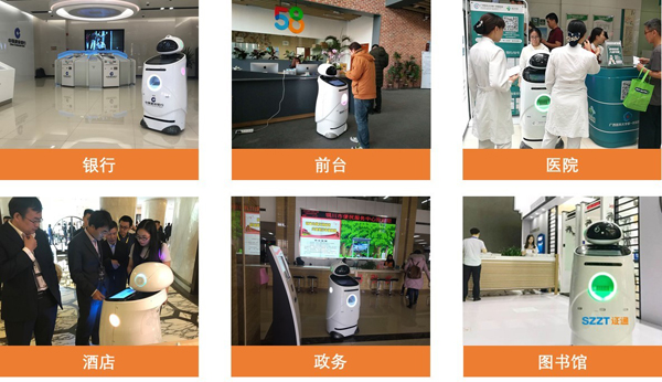 證通的公共服務(wù)機(jī)器人現(xiàn)已廣泛應(yīng)用于銀行、企業(yè)前臺、醫(yī)院、酒店、政務(wù)大廳、圖書館、影院等多個場景,每天對外提供的服務(wù)達(dá)萬次以上,能夠為不同行業(yè)、不同場景下的用戶提供智能化、人性化的服務(wù)。