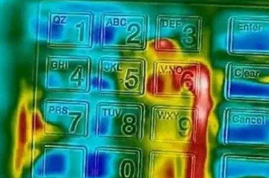 2普通材質(zhì)的鍵盤大家在按下數(shù)字之后,鍵盤的表面會因溫度的不同而產(chǎn)生顏色深淺不等的印記,利用熱感應(yīng)設(shè)備可以清楚的分辨出您的密碼順序。金屬鍵盤就是為了防止讓犯罪分子有機可乘而設(shè)計的,金屬鍵盤的特點是技術(shù)導電率高,溫度變化快,就算有人用熱感應(yīng)設(shè)備拍下照片,也很能根據(jù)顏色的深淺來判斷數(shù)字的順序,以達到防盜的目的。