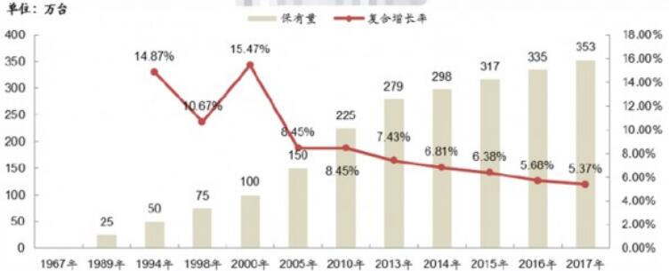 20世紀70年代中后期,在美國、日本和西歐等國家的推動下,隨著銀行卡的發卡量和持卡人數量不斷增多,以及信息技術的不斷革新,銀行開始擴張ATM網絡以滿足日益增多的持卡人的需要,ATM保有量開始穩步增長。