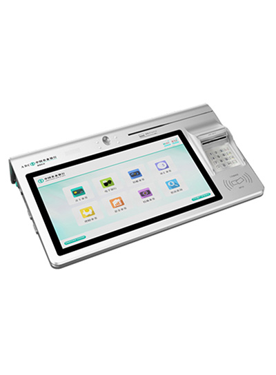 高度集成的大堂式超級柜臺終端,集成身份證讀卡器、銀行卡發...